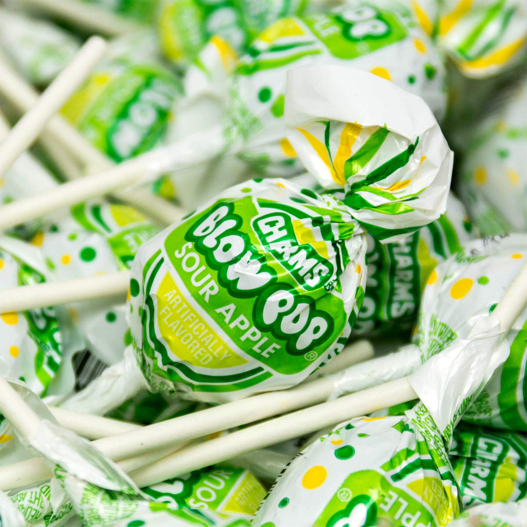 Get ready for a pucker-up sensation followed by a sweet reward! This 48-count box of Charms Blow Pops features the intensely popular Sour Apple flavor. Each lollipop starts with a bold, eye-watering sour green apple hard candy shell that quickly mellows into sweet fruitiness. The ultimate surprise is revealed when you reach the center—a perfectly sized piece of chewy, bubblegum. It's the ideal two-in-one treat for sour candy lovers!