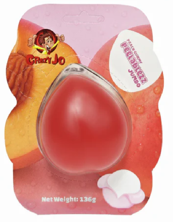 Peel your way to a fruity treat with Crazy jo peach gummy peelablezz jumbo! This 136g pack contains jumbo-sized gummy peaches that offer a playful and unique experience—they are designed to be peelable, adding an element of fun to your snacking! Indulge in the sweet, authentic taste of juicy peach candy combined with a satisfyingly chewy gummy texture. This jumbo size is perfect for an extra-large, interactive, and deliciously fruity snack!