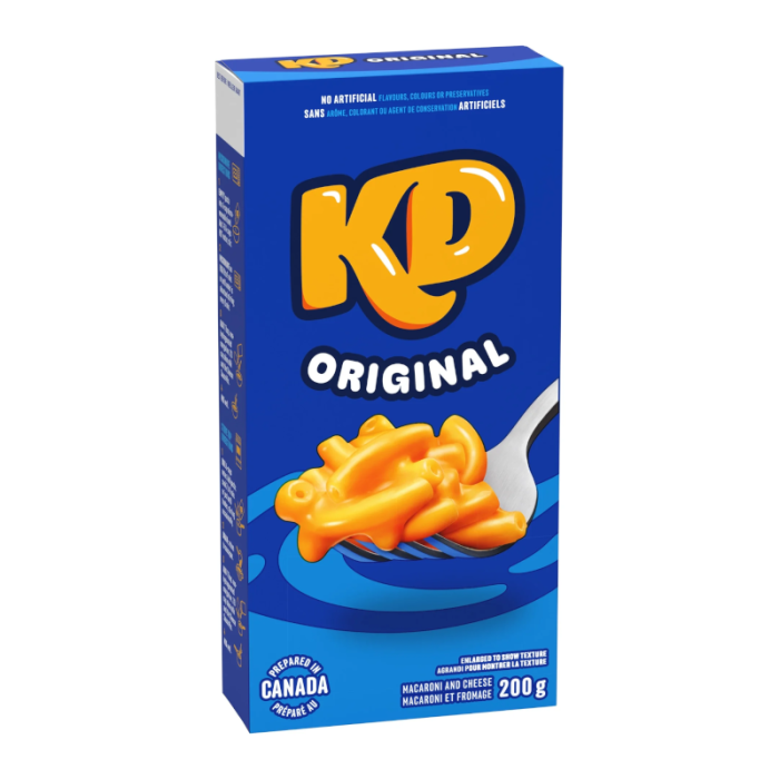 Kraft Original Macaroni & Cheese Dinner is a convenient boxed dinner. Kids and adults love the delicious taste of macaroni with cheesy goodness. Our 7.25 ounce mac and cheese dinner includes macaroni pasta and original flavor cheese sauce mix, so you just need milk and margarine or butter to make a tasty mac and cheese dinner kids love. With no artificial flavors, no artificial preservatives, and no artificial dyes, Kraft macaroni and cheese is always a great family dinner choice. Preparing macaroni and cheese is a breeze.