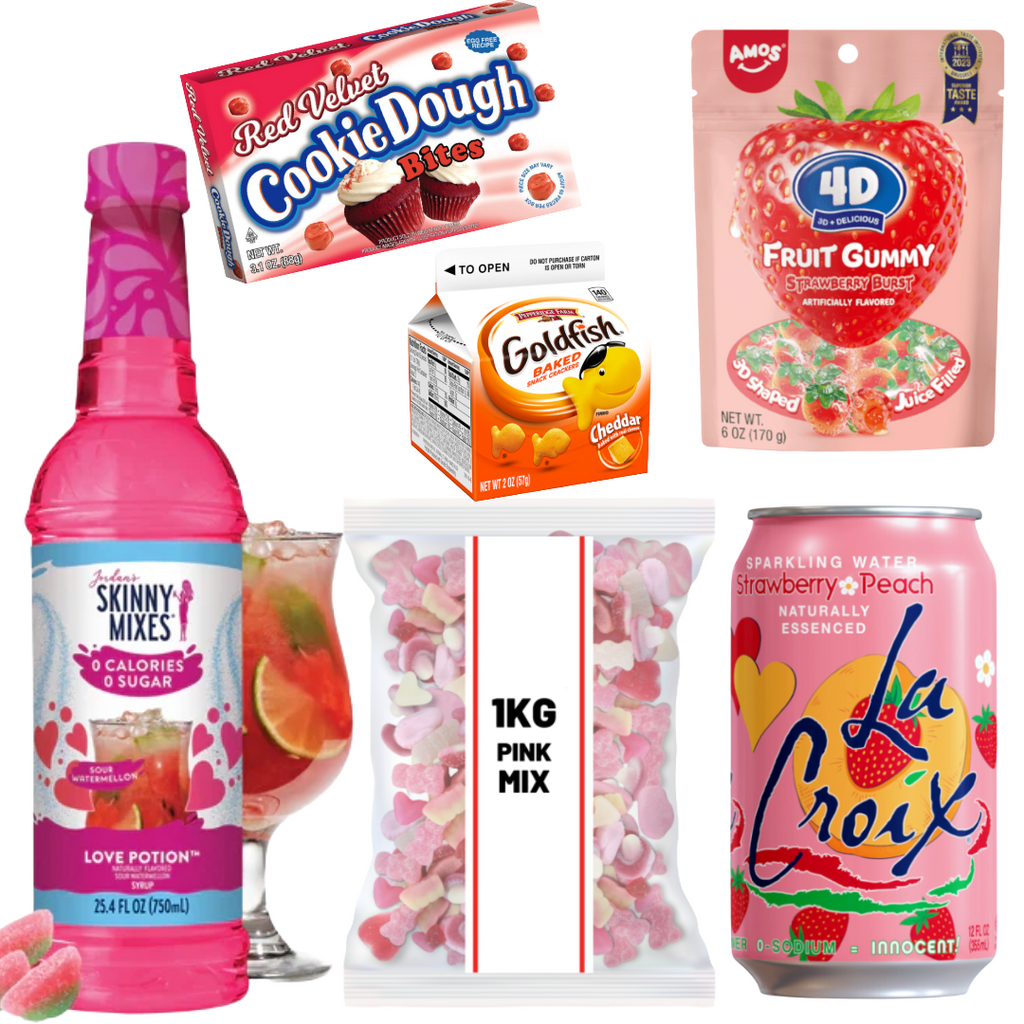From sweet confectionery to refreshing drinks and playful snacks, this bundle offers a balanced variety that makes it ideal for birthdays, date nights, Valentine’s gifting, care packages, or just a thoughtful surprise. The pink and love-themed presentation makes it visually appealing and perfect for social media gifting moments.