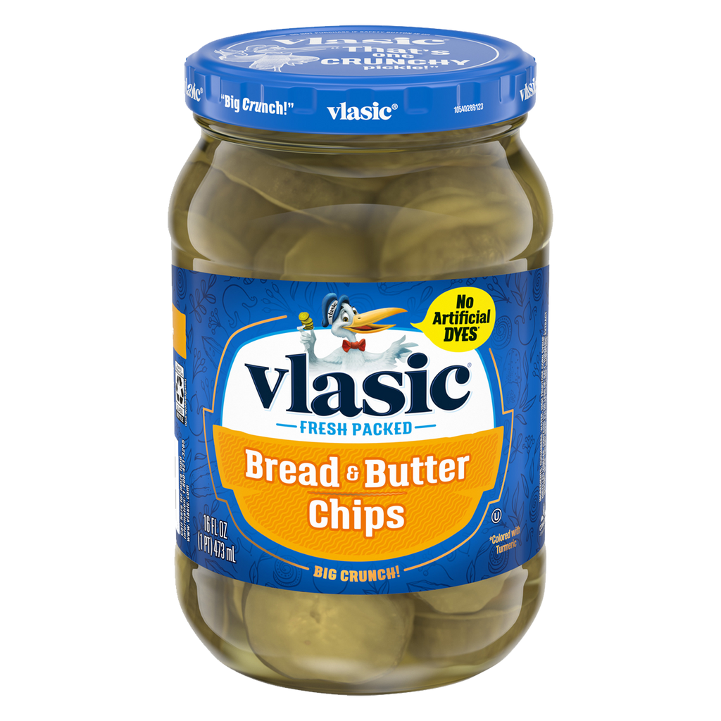 Vlasic Bread and Butter Pickle Chips are deliciously tart with a hint of sweetness. All included ingredients, along with the Vlasic secret pickling recipe, make these bread and butter pickles mildly sweet and tasty. These sandwich pickles contain 15 calories per serving and deliver a one-of-a-kind crunch your entire family will love. Bread and butter pickle chips are ideal for topping hamburgers and sandwiches, or you can enjoy them right out of the jar as a satisfying snack.